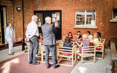 Hoog bezoek gisteren in het LeOnhuis te Hasselt. Patrick Hoogmartens, bisschop van de Limburgse centrumstad, kwam er een namiddag op bezoek. Hij kreeg een woordje uitleg over de werking van het LeOnhuis en maakte ook de nodige tijd om in gesprek te gaan met een aantal kinderen.