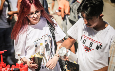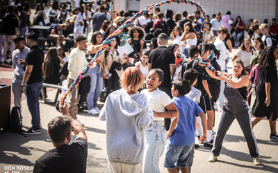 Don Bosco Groot-Bijgaarden startte het nieuwe schooljaar met een groots evenement. Vorig schooljaar behaalde de Don Boscoschool het wereldrecord 'langste vriendschapsbandje maken' en dat mocht nu uitgebreid gevierd worden.