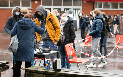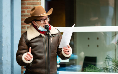 Nele Buyst en Christophe Vekeman dwaalden coronaproof rond op school om onschuldige leerlingen te overvallen met hun werk, gedichten werden gescandeerd op de speelplaats, sonnetten werden op de ramen geschilderd en nog zoveel meer. Kortom: het was in Sint-Denijs-Westrem een totaalspektakel met poëzie in een glansrol.