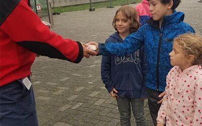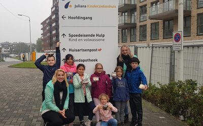 Te voet gingen zij naar bakker Roodenrijs voor een tas vol bonbons. Daarna reisden ze naar het HagaZiekenhuis in Den Haag voor een ontmoeting op afstand met Marnix en Elly, die de bonbons in ontvangst namen. De kinderen mochten al hun vragen over het coronavirus en het ziekenhuis stellen. Marnix en Elly hebben de bonbons vervolgens uitgedeeld aan de medewerkers van de intensive care.