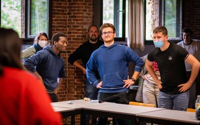 "In het najaar van 2021 gaven beide kunstenaars een vijftal workshops aan een groep van ongeveer twintig leerlingen van het eerste tot het zesde jaar uit de verschillende afdelingen van onze school", vertelt leerkracht Wouter Ghijs. "De bedoeling was dat de groep leerlingen een kunstwerk zou bedenken dat de identiteit van onze school uitdrukt. Het kunstwerk zou een installatie worden die op de gevel van de school zou gemonteerd worden. Het kunstwerk kreeg meteen een naam: ‘De Façade'."