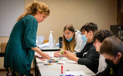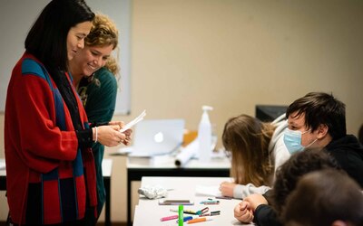Vrijdag werd het kunstwerk 'De Façade' ingehuldigd in Don Bosco Sint-Denijs-Westrem. Het kunstwerk is het resultaat van een samenwerking tussen de leerlingen van de Don Boscoschool en de Gentse kunstenaars Lies Caeyers en Sarah Yu Zeebroek.