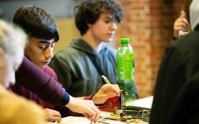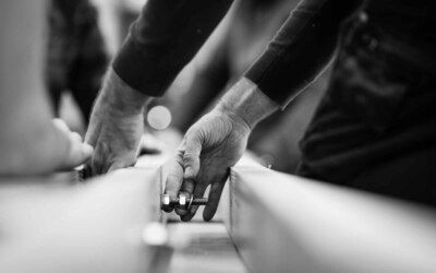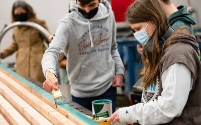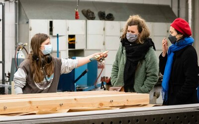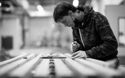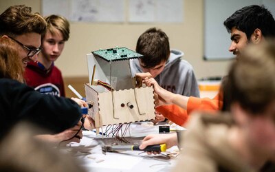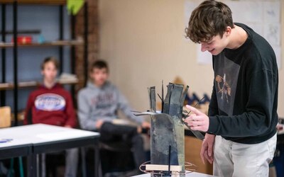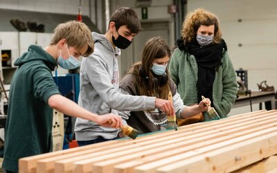 De afspraak met de kunstenaars was dat zowel het idee als de realisatie volledig in handen zou liggen van de leerlingen. "De rol van de kunstenaars was het stimuleren van de creativiteit bij de leerlingen en het begeleiden bij de uitwerking van hun ideeën tot ontwerpen", gaat Wouter verder. "De workshops resulteerden in vijf ontwerpen. Deze werden voorgesteld aan heel de school, met de vraag om één ontwerp te selecteren. Het werden uiteindelijk ‘de springplanken’, met als betekenis: een school die aan iedereen kansen biedt om de sprong te maken naar een waardevolle persoonlijke en professionele toekomst. De springplanken werden naar het gemaakte ontwerp gerealiseerd door leerlingen in de verschillende werkhuizen van onze school."