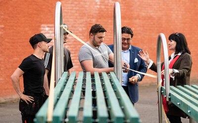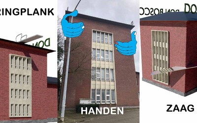 Ondertussen moest stevig worden nagedacht over de montage van het kunstwerk op de façade van de school. "Bij de Dienst Stedenbouw en Ruimtelijke Planning vernamen we dat de voorgevel van onze school in 2009 werd aangeduid als vastgesteld bouwkundig erfgoed", legt Wouter uit. "Het oorspronkelijke plan om het kunstwerk te monteren op de voorgevel kwam daardoor in het gedrang. We zochten een nieuwe bestemming. De springplanken werden ‘banken’ centraal in de school. Op die manier werd het werk een installatie waar de leerlingen kunnen chillen… op hun eigen kunstwerk. De naam ‘De Façade’ bleef wel bewaard. Het blijft één van onze uithangborden."
