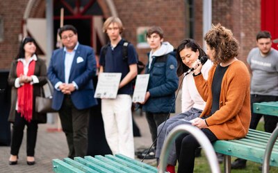 De samenwerking met Lies Caeyers en Sarah Yu Zeebroek en de realistaie werd mogelijk gemaakt door de Dienst Cultuur van stad Gent en door CultuurKuur van Onderwijs Vlaanderen. Het kunstwerk werd onthuld in aanwezigheid van de Gentse cultuurschepen Sami Souguir. Beelden van het kunstwerk (van de eerste workshops tot het uiteindelijke resultaat) kan u hieronder vinden.